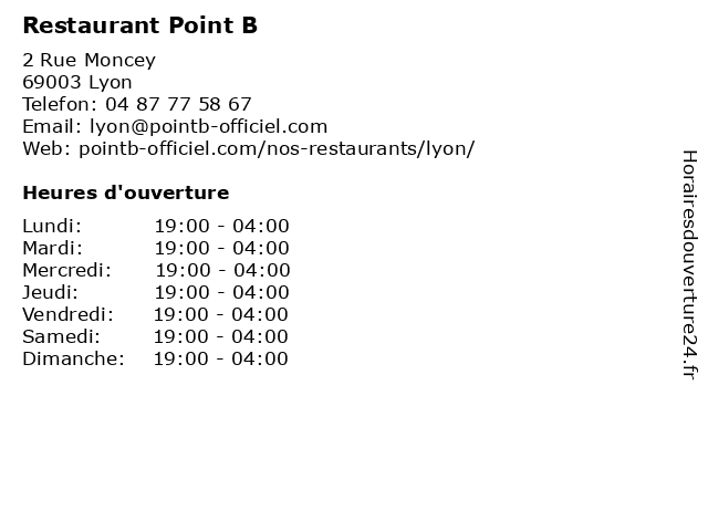 | Lundi | 19:00-04:00 |