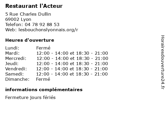 | Mardi | 12:00-14:00 et 18:30-21:00 |