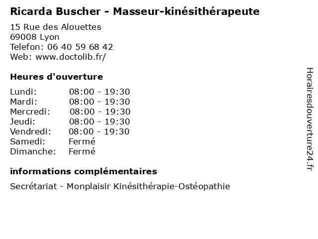| Lundi | 08:00-19:30 |