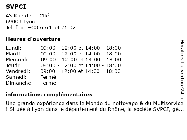Une grande expérience dans le Monde du nettoyage & du Multiservice! Située à Lyon dans le département du Rhône, la société SVPCI, gérée par Stéphane ROCHE, est spécialisée dans le domai...