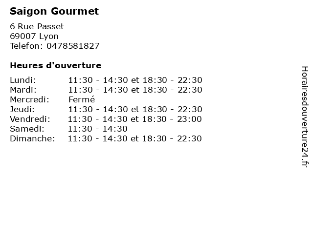 | Vendredi | 11:30-14:30 et 18:30-23:00 |