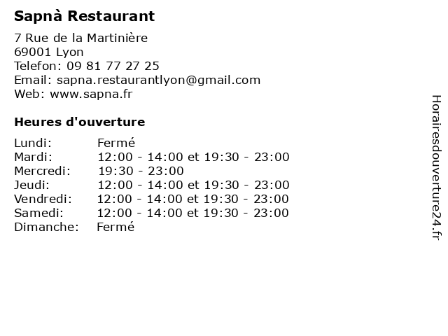| Samedi | 12:00-14:00 et 19:30-23:00 |