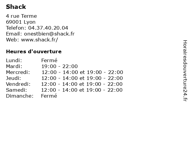 | Lundi | Fermé |