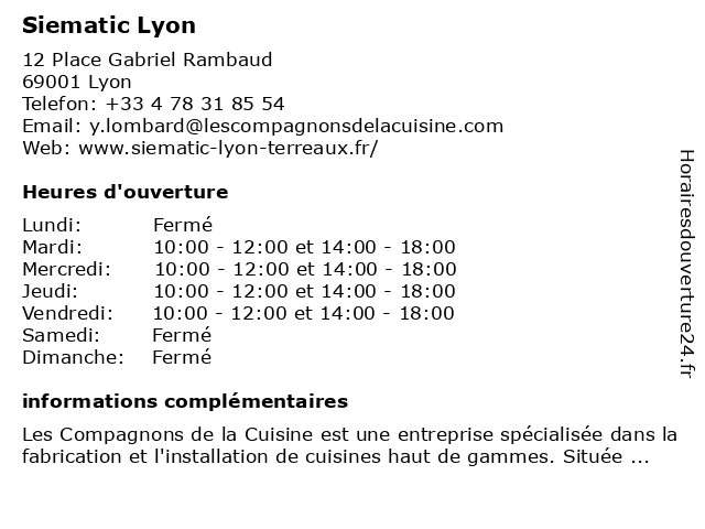 Les Compagnons de la Cuisine est une entreprise spécialisée dans la fabrication et l'installation de cuisines haut de gammes. Située au 12 place Gabriel Rambaud à Lyon, elle est réputée pour ...