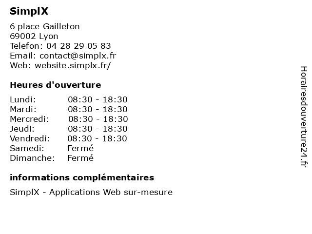 | Lundi | 08:30-18:30 |