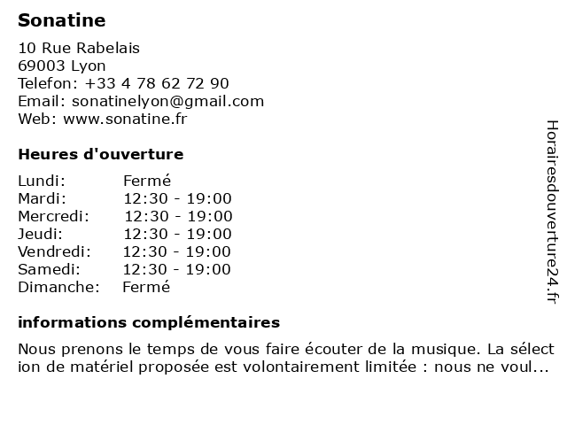 | Samedi | 12:30-19:00 |