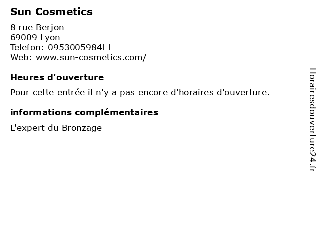 1 Mac Cosmetics (Distance: 3,34 km) 89 Rue du Président Edouard Herriot, 69002 Lyon beauté, cosmetics, cosmétiques, mac, maquillage, parfumerie, parfums, produits 2 LUSH Cosmetics Lyon Rue de la République (Distance: 3,43 km) 71 Rue De La République, 69002 Lyon boutique de cadeaux, cosmetics, de, drugstores, la, lush, lyon, magasin d'articles de fête, magasin de produits de soins capillaires, parfumerie, rue, république 3 Saga Cosmetics (Distance: 3,44 km) 15 rue Victor Hugo, 69000 Lyon cosmetics, cosmétique, magasin, maquillage, saga 4 Ongli' Sun (Distance: 3,88 km) 25 Cours Lafayette, 69006 Lyon arrangements, beauté, manucure, mode, ongli', ongli'sun, sun 6 |