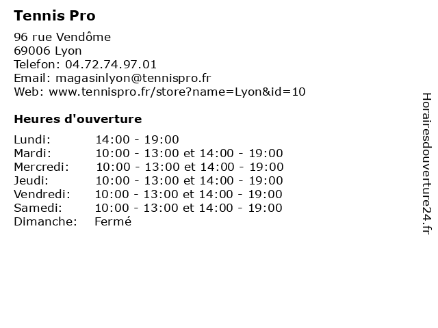 | Vendredi | 10:00-13:00 et 14:00-19:00 |