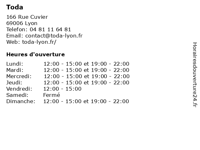 | Dimanche | 12:00-15:00 et 19:00-22:00 |