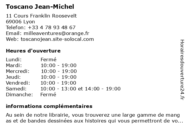 | Samedi | 10:00-13:00 et 14:00-19:00 |