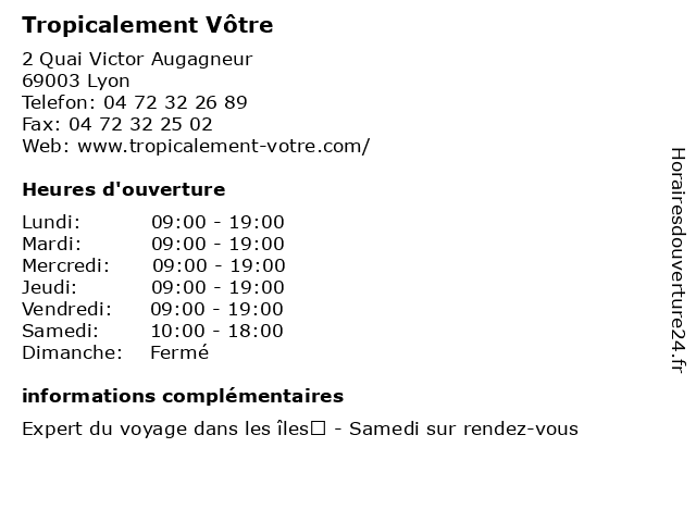 | Dimanche | Fermé |