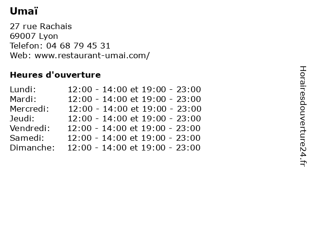 | Dimanche | 12:00-14:00 et 19:00-23:00 |