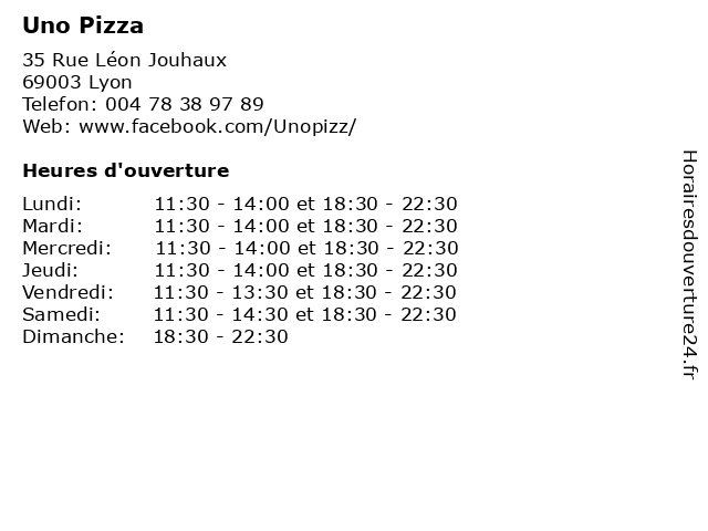 | Lundi | 11:30-14:00 et 18:30-22:30 |