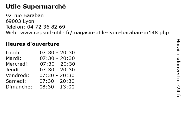 1 Utile Supermarché (Distance: 1,15 km) 3 place René Deroudille, 69006 Lyon alimentation, fruits, légumes, supermarché, supérette, utile, épicerie 2 Utile Supermarché (Distance: 1,36 km) 5 cours Emile Zola, 69100 Villeurbanne alimentation, fruits, légumes, supermarché, supérette, utile, épicerie 3 Utile Supermarché (Distance: 2,75 km) 29 rue Paul Chenavard, 69001 Lyon alimentation, fruits, légumes, supermarché, supérette, utile, épicerie 4 Utile Supermarché (Distance: 4,32 km) - Rue Louis Ailloud, 69500 Bron alimentation, fruits, légumes, supermarché, supérette, utile, épicerie 5 Utile Supermarché (Distance: 9,01 km) - Boulevard François Reymond, 69800 Saint-Priest alimentation, supermarché, supérette, utile, épicerie 6 UTILE LYON Pompidou (Distance: 0,02 km) 40-42 Avenue Georges Pompidou, 69003 Lyon lyon, pompidou, utile |