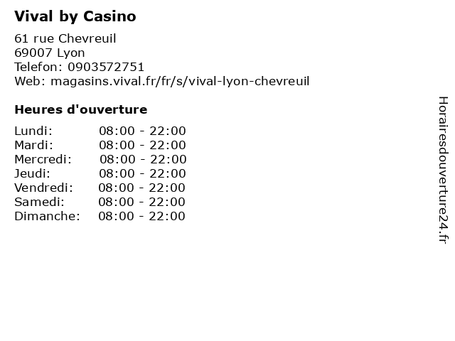 1 Vival by Casino (Distance: 0,27 km) 4 Place Jules Guesde, 69007 Lyon by, casino, droguerie, d’hypermarchés, frais, fruits et légumes, hygiène, parfumerie et autres produits non alimentaires., surgelés, vival, épicerie 2 Vival by Casino (Distance: 0,35 km) 32 Avenue Berthelot, 69007 Lyon alimentation, by, casino, supermarché, vival 3 Vival by Casino (Distance: 2,57 km) 78 Boulevard des États-Unis, 69008 Lyon by, casino, droguerie, d’hypermarchés, frais, fruits et légumes, hygiène, parfumerie et autres produits non alimentaires., surgelés, vival, épicerie 4 Vival by Casino (Distance: 2,62 km) 3 Place de la Ferrandière, 69003 Lyon alimentation, by, casino, supermarché, vival 5 Vival by Casino (Distance: 3,17 km) 14 Rue d'Austerlitz, 69004 Lyon by, casino, droguerie, d’hypermarchés, frais, fruits et légumes, hygiène, parfumerie et autres produits non alimentaires., surgelés, vival, épicerie 6 Vival by Casino (Distance: 3,45 km) 103 Chemin du Grand Roule, 69350 La Mulatière by, casino, droguerie, d’hypermarchés, frais, fruits et légumes, hygiène, parfumerie et autres produits non alimentaires., surgelés, vival, épicerie |