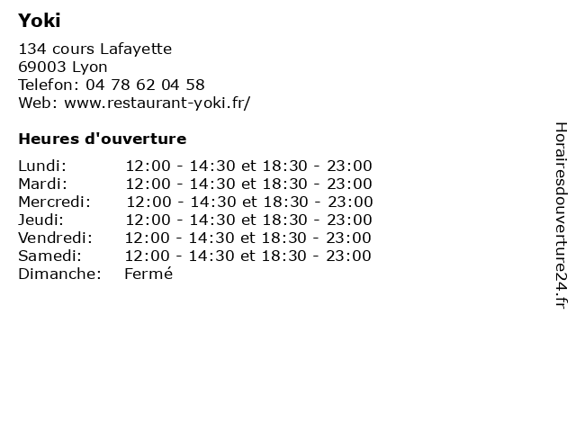 | Lundi | 12:00-14:30 et 18:30-23:00 |