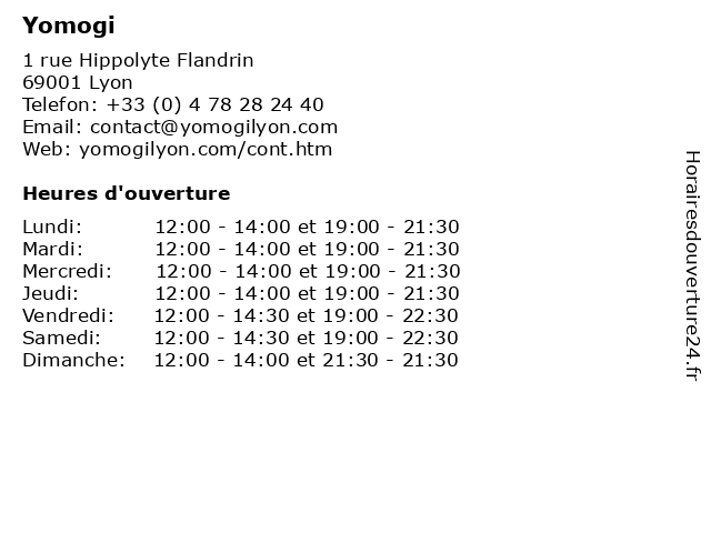 | Vendredi | 12:00-14:30 et 19:00-22:30 |