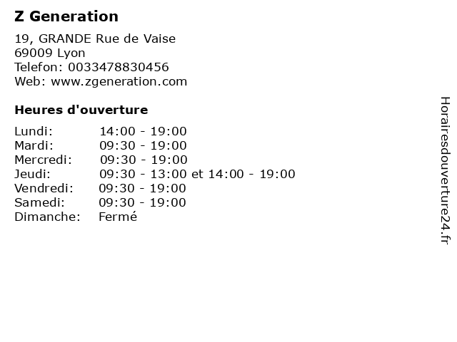 | Jeudi | 09:30-13:00 et 14:00-19:00 |