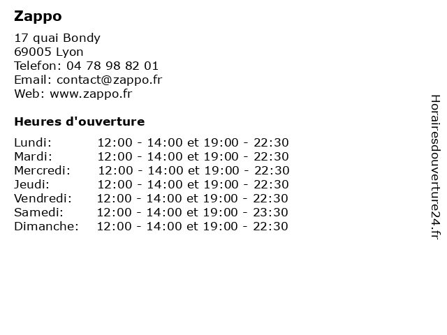 | Dimanche | 12:00-14:00 et 19:00-22:30 |