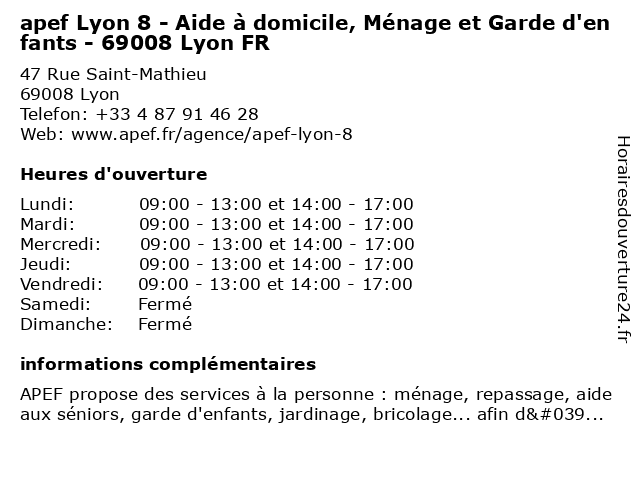 Termes de recherche pour apef Lyon 8 - Aide à domicile, Ménage et Garde d'enfants - 69008 Lyon FR:et, garde, lyon, domicile, fr, apef, ménage, aide, d'enfants, 69008 |