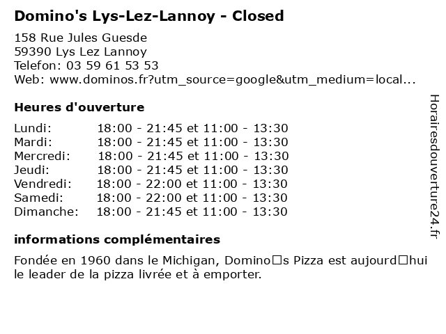 Termes de recherche pour Domino's Lys-Lez-Lannoy - Closed:lys, lez, lannoy, domino's, closed |