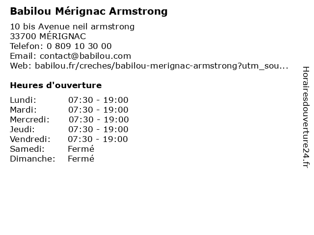 Termes de recherche pour Babilou Mérignac Armstrong:merignac, armstrong, babilou |