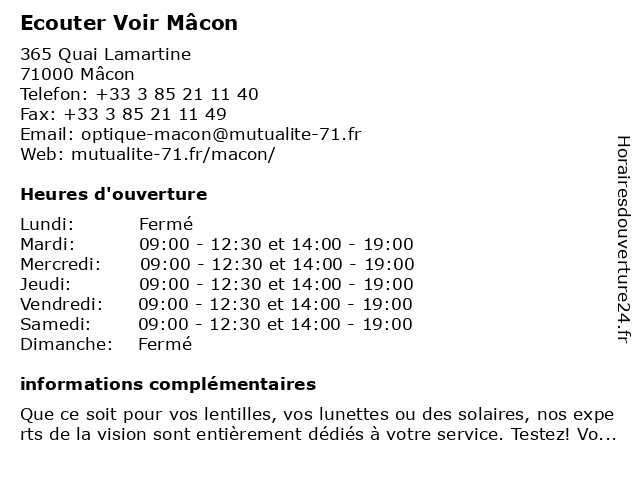 | Mercredi | 09:00-12:30 et 14:00-19:00 |