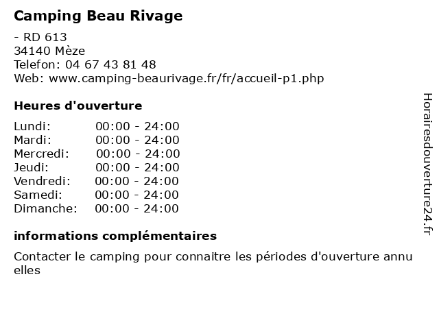 1 Camping Beau Rivage - Réception (basse saison) (Distance: 0,00 km) - RD 613, 34140 Mèze basse, beau, camping, hebergement, rivage, réception, saison, tourisme 2 Camping Beau Rivage - Réception (haute saison) (Distance: 0,00 km) - RD 613, 34140 Mèze beau, camping, haute, hebergement, rivage, réception, saison, tourisme 3 Camping Charlemagne (Réception) (Distance: 14,04 km) - Avenue des Campings, 34340 Marseillan Plage camping, charlemagne, hebergement, réception, tourisme 4 Camping les Mediterranees - Beach Garden (Réception) (Distance: 14,48 km) - Avenue des Campings, 34340 Marseillan-Plage beach, camping, garden, hebergement, les, mediterranees, réception, tohapi, tourisme 5 Camping les Mediterranees - Beach Garden (Distance: 14,48 km) - Avenue des Campings, 34340 Marseillan-Plage beach, camping, garden, hebergement, les, mediterranees, tohapi, tourisme 6 Camping Nouvelle Floride (Réception) (Distance: 14,60 km) 562 Avenue des Campings, 34340 Marseillan Plage camping, floride, hebergement, nouvelle, réception, tourisme |