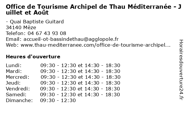 Termes de recherche pour Office de Tourisme Archipel de Thau Méditerranée - Juillet et Août:restaurant, et, de, loisir, administration, office, tourisme, terroir, méditerranée, août, juillet, archipel, thau |