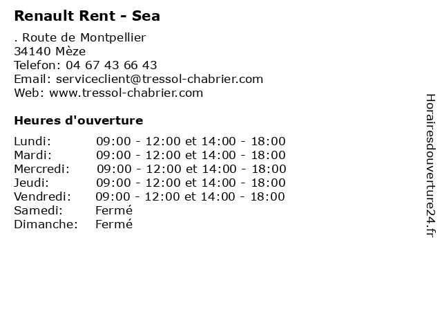 1 Renault Dacia - Sea - Mécanique (Distance: 0,00 km) . Route de Montpellier, 34140 Mèze atelier, automobile, concessionnaire, dacia, garage, mécanique, neuve, occasion, renault, réparation, sea, vente 2 Renault Dacia - Sea - Magasin (Distance: 0,00 km) . Route de Montpellier, 34140 Mèze accessoires, automobile, dacia, garage, magasin, pieces, renault, sea 3 Renault Dacia - Sea - Commercial (Distance: 0,00 km) . Route de Montpellier, 34140 Meze atelier, automobile, commercial, concessionnaire, dacia, garage, neuve, occasion, renault, réparation, sea, vente 4 Renault Dacia - Sète Exploitation Automobiles - Mécanique (Distance: 8,55 km) . Avenue Les Eaux Blanches, 34200 Sète atelier, automobile, automobiles, concessionnaire, dacia, exploitation, garage, mécanique, neuve, occasion, renault, réparation, sète, vente 5 Renault (Distance: 15,57 km) . route Nationale 113, 34120 Pezenas automobile, entretien, garage, neuf, occasion, renault, réparation, vente, vidange 6 Renault - L'Occitane Automobiles - Véhicule neuf (Distance: 15,64 km) . Route de Sète, 34300 Agde atelier, automobile, automobiles, concessionnaire, garage, l'occitane, neuf, neuve, occasion, renault, réparation, vente, véhicule  |
