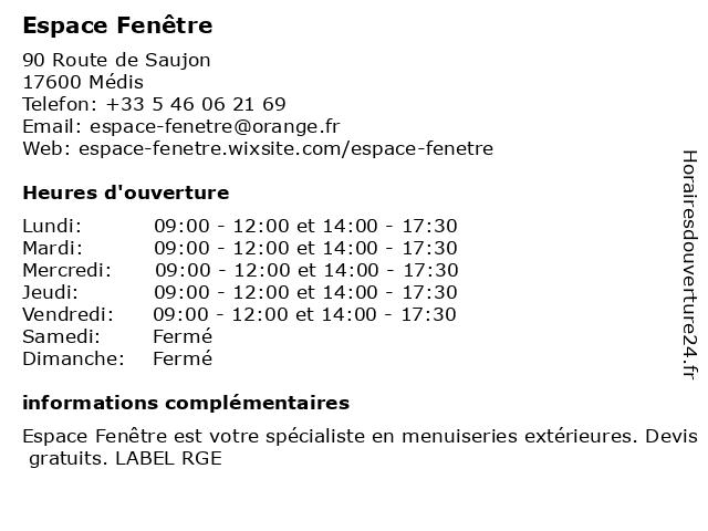 | Lundi | 09:00-12:00 et 14:00-17:30 |