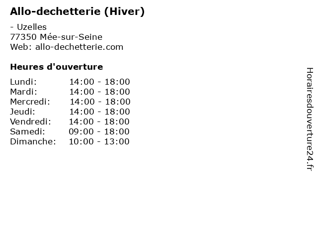 1 Allo-dechetterie (Hiver) (Distance: 18,06 km) - La plaine, 77166 Évry-Grégy-sur-Yerre allo, dechetterie, gravats, hiver, huiles usées, la réception des déchets et écocentres, les appareils électroménagers, les déchets verts, papier et carton en quantité 2 Allo-dechetterie (Eté) (Distance: 0,00 km) - Uzelles, 77350 Mée-sur-Seine allo, dechetterie, eté, gravats, huiles usées, la réception des déchets et écocentres, les appareils électroménagers, les déchets verts, papier et carton en quantité 3 Nespresso (Dechetterie) (Distance: 0,82 km) - Rue Robert Schuman, 77350 Le Mee Sur Seine accessories, coffee, dechetterie, machines, nespresso, points de recyclage, services 4 Déchetterie (hiver) (Distance: 1,38 km) - Rue de Seine, 77190 Dammarie-les-Lys collecte, dechetterie, déchets, déchetterie, hiver, recyclage, tri 6 Déchetterie (hiver) (Distance: 4,79 km) - Rue du Tertre de Chérisy, 77000 Vaux-le-Pénil collecte, dechetterie, déchets, déchetterie, hiver, recyclage, tri |