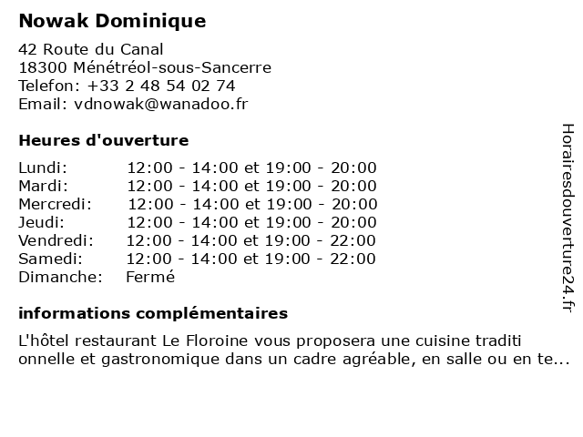 | Samedi | 12:00-14:00 et 19:00-22:00 |