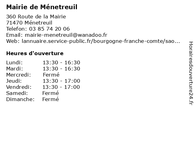 Termes de recherche pour Mairie de Ménetreuil:de, administration, mairie, ménetreuil, service public |