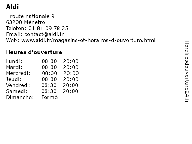 1 ALDI (Distance: 0,78 km) RN 9, 63200 Ménétrol aldi, aldi près de moi, courses près de moi, magasin, magasin discount, magasin discount près de moi, supermarché, supermarché près de moi, supermarchés, supermarchés près de moi, épicerie, épicerie près de chez moi 2 Aldi (Distance: 3,91 km) 93 Avenue Chatel Guyon, 63200 Riom aldi, alimentaire, courses, fruits, marche, épicerie 3 ALDI (Distance: 3,94 km) 93 Avenue de Châtel Guyon, 63200 Riom aldi, aldi près de moi, courses près de moi, magasin, magasin discount, magasin discount près de moi, supermarché, supermarché près de moi, supermarchés, supermarchés près de moi, épicerie, épicerie près de chez moi 4 ALDI (Distance: 4,35 km) 71 Avenue Jean Jaurès, 63200 Mozac aldi, aldi près de moi, courses près de moi, magasin, magasin discount, magasin discount près de moi, supermarché, supermarché près de moi, supermarchés, supermarchés près de moi, épicerie, épicerie près de chez moi 5 Aldi (Distance: 6,64 km) - Carrefour des Charmes, 63360 Gerzat aldi, alimentaire, alimentation, supermarché, supérette, épicerie 6 ALDI (Distance: 6,69 km) Carrefour des Charmes, 63360 Gerzat aldi, aldi près de moi, courses près de moi, magasin, magasin discount, magasin discount près de moi, supermarché, supermarché près de moi, supermarchés, supermarchés près de moi, épicerie, épicerie près de chez moi |