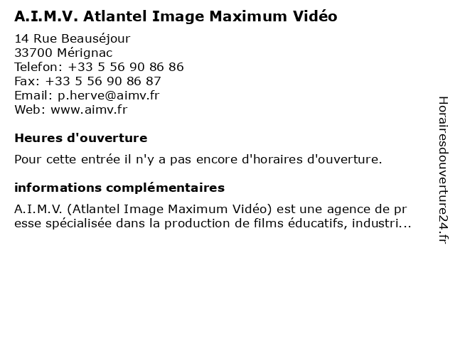 | Appeler A.I.M.V. Atlantel Image Maximum Vidéo | |