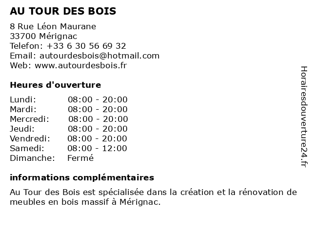 1 Chausson Bois Couverture (Distance: 0,69 km) 148 Avenue de magudas, 33700 Merignac bois, chausson, couverture 2 Bois Concept M (Distance: 0,76 km) 131 Avenue des Marronniers, 33700 Mérignac bois, charpente, concept, conceptm, couverture, ossature bois, toiture 3 BSM - Bois Et Structure de la Maison (Distance: 0,90 km) 42 Bis Rue Rouget de Lisle, 33700 Mérignac aménagement, bois, bsm, charpente, de, et, la, maison, parquet, rénovation, structure, structure maison 4 Aquitaine Bois Coffrage (Distance: 1,08 km) 79 Rue de la Morandière, 33185 Le Haillan aquitaine, bois, coffrage 5 Bordeaux Bois Service (Distance: 1,21 km) 12 Avenue Jacqueline Auriol, 33700 Mérignac bois, bordeaux, service 6 |