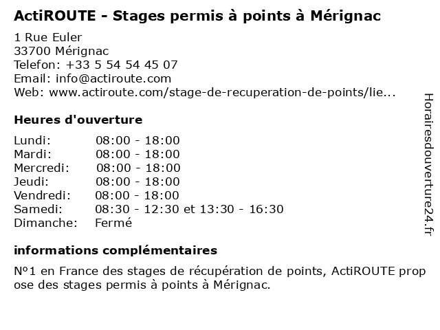 | Samedi | 08:30-12:30 et 13:30-16:30 |