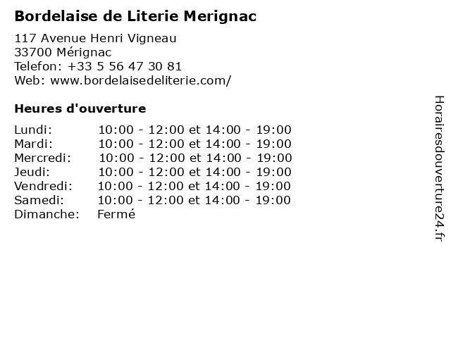 Lundi | 10:00-12:00 et 14:00-19:00 |