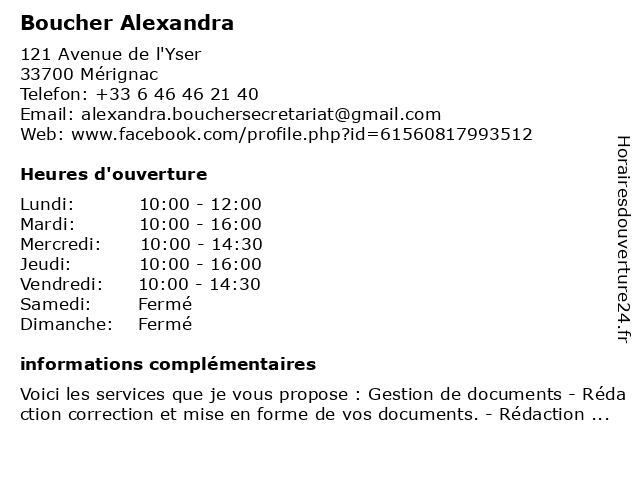 1 Le Fils du Boucher (Distance: 1,94 km) 236 avenue de la Marne, 33700 Mérignac boucher, boucherie, du, fils, français, le, restaurant, viande 2 Despi le Boucher (Distance: 2,10 km) 46 Avenue de la Grange Noire, 33700 Merignac boeuf, boucher, boucherie, boucheur, charcuterie, despi, le, porc, veau 3 Laura Boucher Pédicure-podologue - secretariat (Distance: 2,58 km) 75B Avenue Pasteur, 33185 Le Haillan boucher, laura, médecin, médecine, médical, pharmaceutique, podologue, pédicure, secretariat, traitement 4 Le Fils Du Boucher Bordeaux (Distance: 7,10 km) 34 Rue Du Pont De La Mousque, 33000 Bordeaux bordeaux, boucher, fils, restaurants 6 L'Atelier Des Viandes Meilleur Boucher d (Distance: 8,13 km) 176 Route De Toulouse, 33130 Begles atelier, boucher, boucheries, meilleur, poissonneries, viandes |