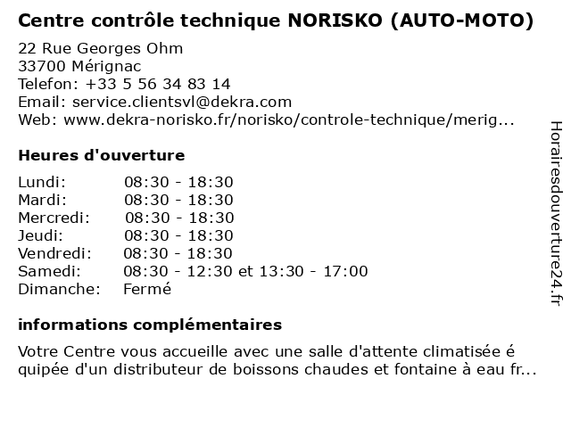 Description de l'entreprise :Préparer votre contrôle techniquePour préparer votre contrôle technique dans notre centre NORISKO de Mérignac, vous pouvez vérifier en amont différents points comme les pneumatiques, la visibilité, le niveau d'huile ou encore l'habitacle. Pour tout savoir, consultez notre vidéo. Voir l'offre |