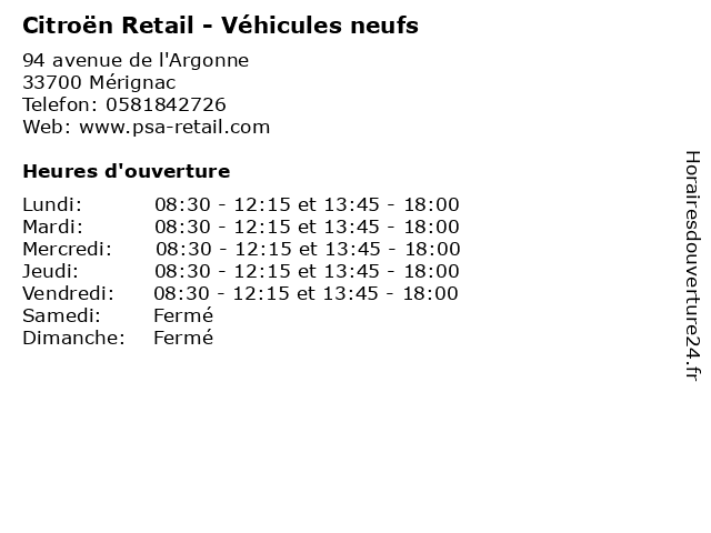 | Mardi | 08:30-12:15 et 13:45-18:00 |
