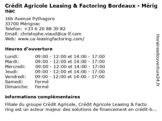 Termes de recherche pour Crédit Agricole Leasing & Factoring Bordeaux - Mérignac:bordeaux, merignac, agricole, crédit, leasing, factoring |