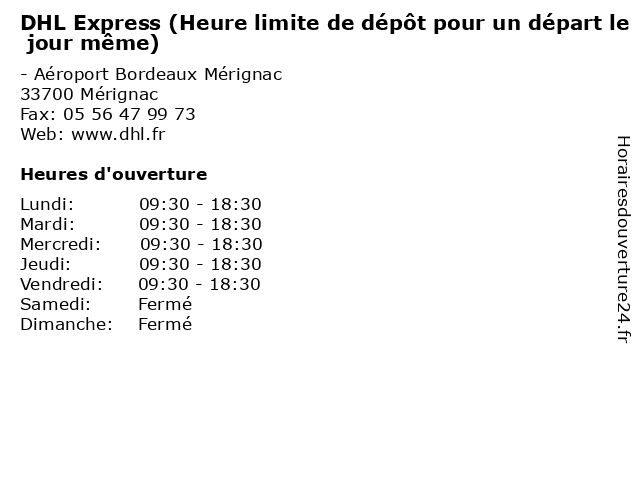 Termes de recherche pour DHL Express (Heure limite de dépôt pour un départ le jour même):le, de, express, même, jour, un, heure, depot, pour, limite, mail, import, depart, logistique, dhl, export |
