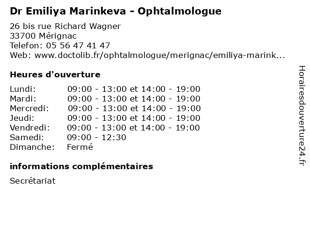 1 Dr Jean-Paul Vounatsos - Ophtalmologue (Distance: 0,14 km) 7 Rue Beaumarchais, 33700 Mérignac consultation, docteur, dr, jean, médecins, ophtalmologie, ophtalmologue, paul, rendez, santé, sur, vounatsos, vous 2 Dr Michel Basili - Ophtalmologue (Distance: 0,22 km) 7 rue Beaumarchais, 33700 Mérignac basili, consultation, docteur, dr, med, michel, médecin, médecine, ophtalmologue, traitement 3 Dr Pablo Plaza - Ophtalmologue (Distance: 0,22 km) 7 Rue Beaumarchais, 33700 Mérignac dr, ophtalmologie, ophtalmologistes, ophtalmologue, pablo, plaza, vision 4 Dr Valérie Archaimbault-Meleard - Ophtalmologue (Distance: 0,22 km) 7 Rue Beaumarchais, 33700 Mérignac archaimbault, dr, meleard, oeuil, ophtalmologue, sante, valérie, vision 5 Dr Mary-Joelle Matton Delannoy - Ophtalmologue (Distance: 0,23 km) 7 Rue Beaumarchais, 33700 Mérignac delannoy, dr, joelle, mary, matton, oeuil, ophtalmologue, sante, vision 6 Dr Christian Bonnin - Ophtalmologue (Distance: 0,43 km) 45 Avenue de la Libération, 33110 Le Bouscat bonnin, christian, consultation, docteur, dr, medecins, ophtalmologie, ophtalmologue, rendez, santé, sur, vous |