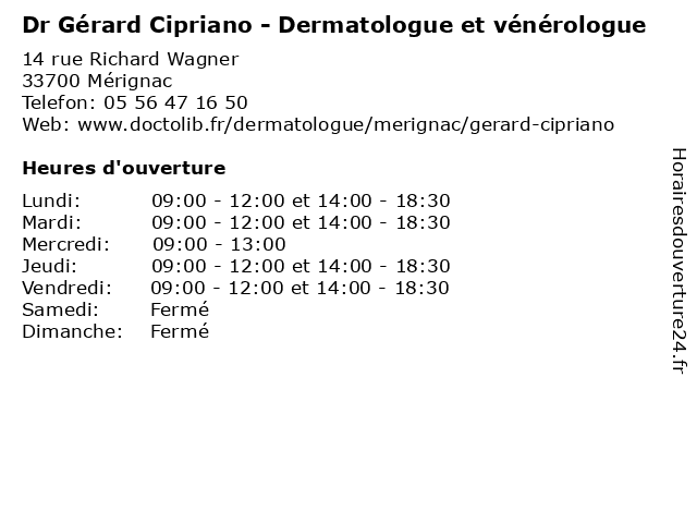 | Lundi | 09:00-12:00 et 14:00-18:30 |