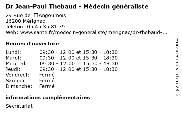 Termes de recherche pour Dr Jean-Paul Thebaud - Médecin généraliste:jean, paul, soin, medical, généraliste, docteur, thébaud, médecin, dr |