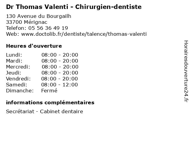 1 Maître Sophie Thomas - Avocate (Distance: 1,55 km) 236 Bis avenue Pasteur, 33000 Bordeaux avocate, avocats, civils, droits, juridiques, maître, sophie, thomas 2 Thomas Amalric - Masseur-kinésithérapeute (Distance: 2,44 km) 3 Rue Archimède, 33700 Mérignac amalric, kiné, kinésithérapeute, masseur, rééducation, soin, thomas 3 Thomas Caritez - Ostéopathe (Distance: 2,63 km) 47 Avenue des Provinces, 33600 Pessac caritez, ostéo, ostéopathe, ostéopathes, soins, thomas 4 Dr Thomas Dietsch - Chirurgien-dentiste (Distance: 2,72 km) 21 Avenue Eugène et Marc Dulout, 33600 Pessac centre, chirurgien, dentaire, dentelia, dentiste, dietsch, dr, implantologie, parodontologie, pessac, thomas 5 Dr Thomas Giraud-Maillet - Radiologue (Distance: 3,53 km) 6 Allée des Tulipes, 33600 Pessac consultation, docteur, dr, giraud, maillet, med, médecin, médecine, radiologue, thomas, traitement 6 Dr Olivier Thomas - Radiologue (Distance: 3,53 km) 6 Allée des Tulipes, 33600 Pessac consultation, docteur, dr, med, médecin, médecine, olivier, radiologue, thomas, traitement |