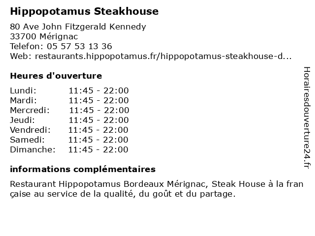 Termes de recherche pour Hippopotamus Steakhouse:hippopotamus, restaurant français, steakhouse, restaurant familial, steak house, restaurant à emporter, bar & gril, restaurant de grillades, café-restaurant |
