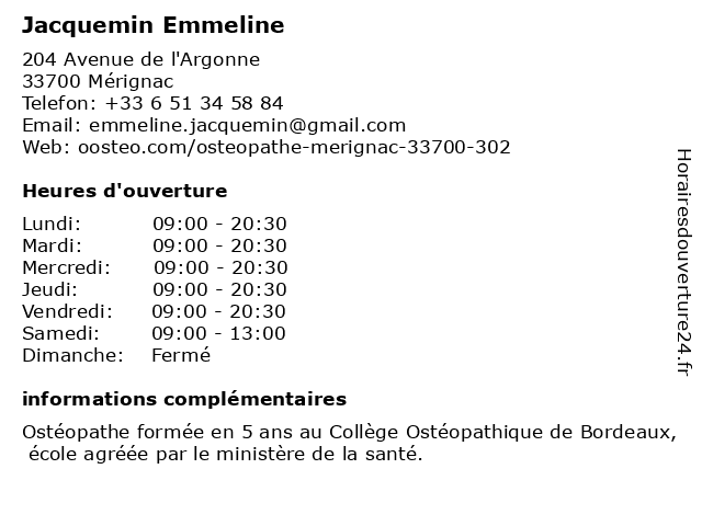| Mercredi | 09:00-20:30 |